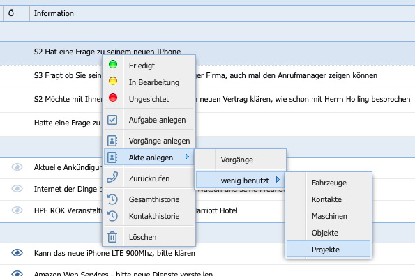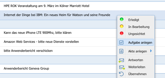- Da sich das System merkt, aus welcher Aktivität Sie eine Aufgabe erzeugt haben, hängt das E-Mail-, Anruf- oder Dokumentenoriginal immer mit dran. Dieses Ursprungs-Element können Sie ich einfach grün machen. Die Aufgabe dazu bleibt gelb.