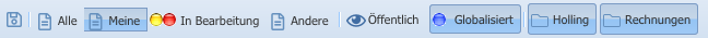Ist der Schalter Meine aktiviert, sehen Sie Dokumente, die Sie in Ihren Ablagen haben und die, die an Sie delegiert wurden (nicht die, die Sie selbst delegiert haben). Beim Klick auf den Schalter Meine, wird rechts davon alles aktiviert, was dazu gehört. So sehen Sie direkt, was Meine bedeutet.