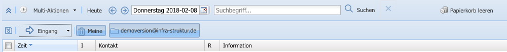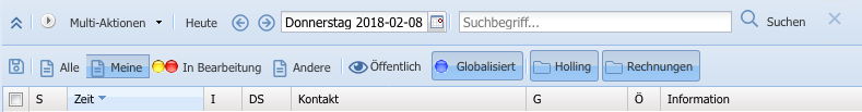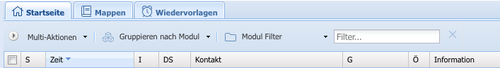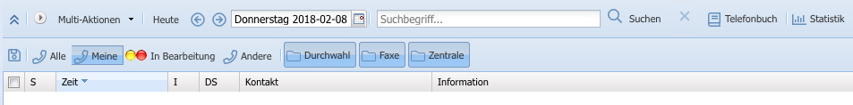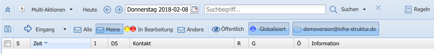 Zwischen dem Suchfeld und dem Benutzerfilter für die Zeiträume, werden je nach Modul Sonderfunktionen eingeblendet. Bei Anrufen finden Sie hier z. B. das Telefonbuch, in den E-Mails den Button, um Ihre Regeln für E-Mails einzustellen.