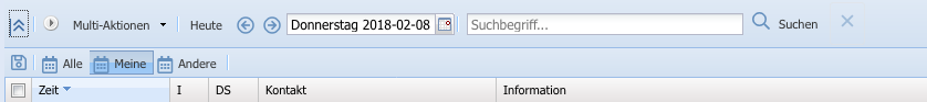 Da der Kalender zwar ein Grundmodul ist, jedoch grundsätzlich anders aufgebaut ist, gelten die Hinweise nur für die Listenansicht der Termine, also in der Suche des Kalenders.
