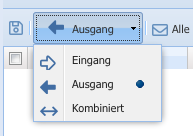 Speziell für die Module E-Mail und Nachrichten, gibt es zusätzlich die Auswahl der Richtung. Hiermit schränken Sie ein, ob Sie nur Ihre eingehenden E-Mails, nur Ihre eingehenden E-Mails oder ein- und ausgehende E-Mails in Komination sehen möchten.