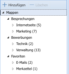 Hinweis: Wenn Sie Mappen löschen, ist das absolut ungefährlich, sie löschen nur eine Sammlung und dessen Namen. Alle enthaltenen E-Mails, Dokumente oder Anrufe werden natürlich NICHT gelöscht und sind weiterhin verfügbar.