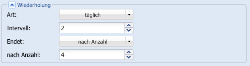 1. vier Aufgaben hintereinander die gleiche Aufgabe jeden zweiten Tag (angelegt am ersten Tag)