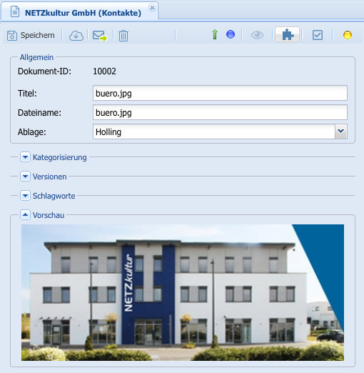 In diesem Panel können Sie die Zusatzinformationen zu hinterlegten Dokumente bearbeiten. Der Begriff Dokument kann etwas verwirrend sein. Konkret sind hier Dateien gemeint, die im System hinterlegt wurden. Dies können z. B. Word-Dateien, Excel-Listen, Grafiken etc. sein.