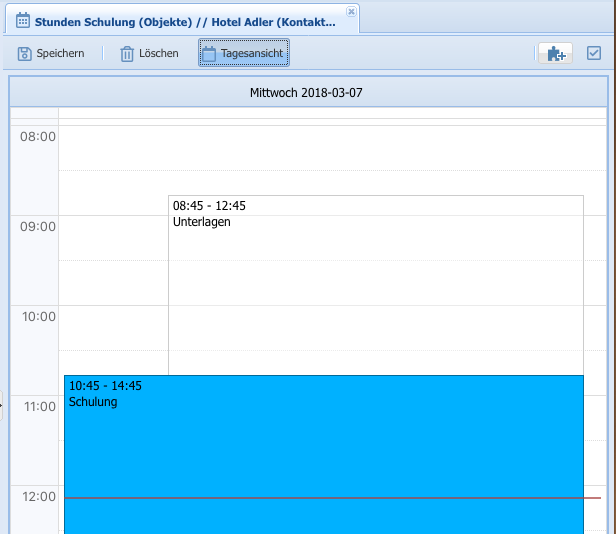 Eine Besonderheit bildet der Button Tagesansicht, mit dem Sie zu einem Termin, gleich den ganzen Tag ansehen können, um sich schnell eine Übersicht zu verschaffen.
