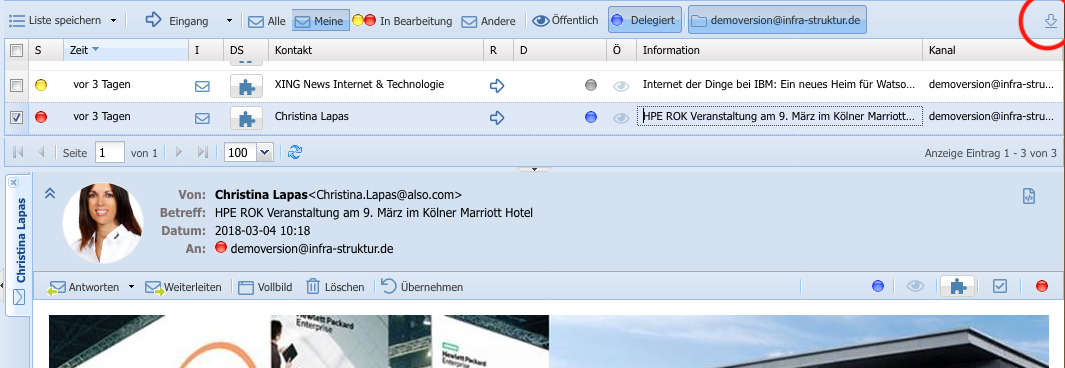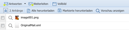 Für E-Mail-Anhänge gibt es im Panel ein Tabelle zum Download und zur Vorschau.