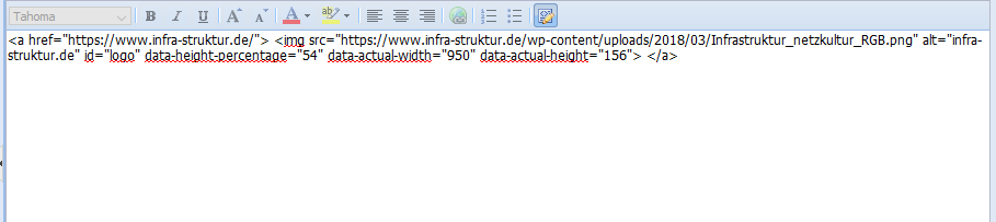 Wenn wir, wie oben beschrieben, zum Beispiel das infra-struktur - Logo von www.infra-struktur.de als Logo in unsere Signatur "ziehen", sähe der Quelltext wie folgt aus: