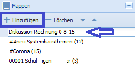 Als "Informationssammler" eignen sich neben den digitalen Akten vor allem die Mappen, welche Sie sich über das Organisationsmenü anlegen können.